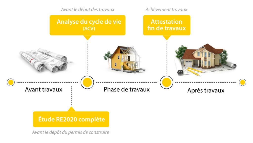 L’Analyse du Cycle de Vie permet d’évaluer l’impact environnemental global d’un bâtiment, depuis la fabrication des matériaux jusqu’à sa fin de vie. Intégrée à la RE2020, l’ACV permet de quantifier les émissions de gaz à effet de serre et d’orienter les choix constructifs vers des solutions à plus faible impact carbone.